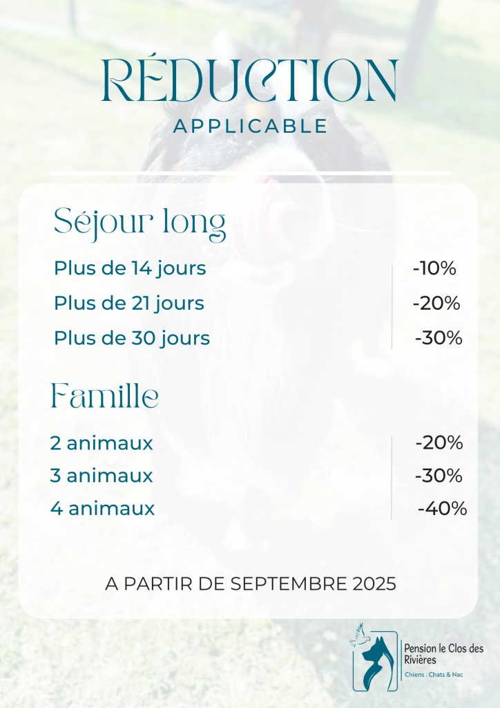 Découvrez nos tarifs compétitifs pour la boarding de vos animaux au Clos des Rivières. Contactez-nous pour plus d’informations et pour réserver dès maintenant !